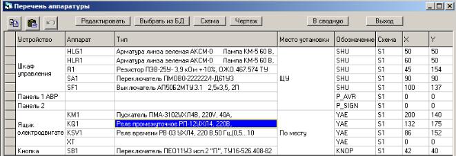 -из базы данных оборудования (В состав САПР ЦВК входит база данных, содержащая технические характеристики основных типов приборов, используемых во вторичных цепях (различные виды реле, переключатели и другие);