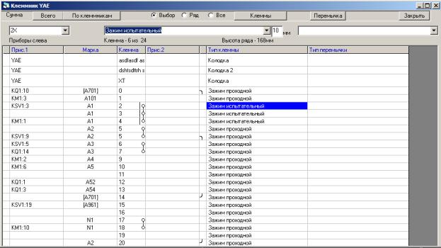 В этом режиме производится корректировка последовательности соединения аппаратов, не выходящих на ряды зажимов.