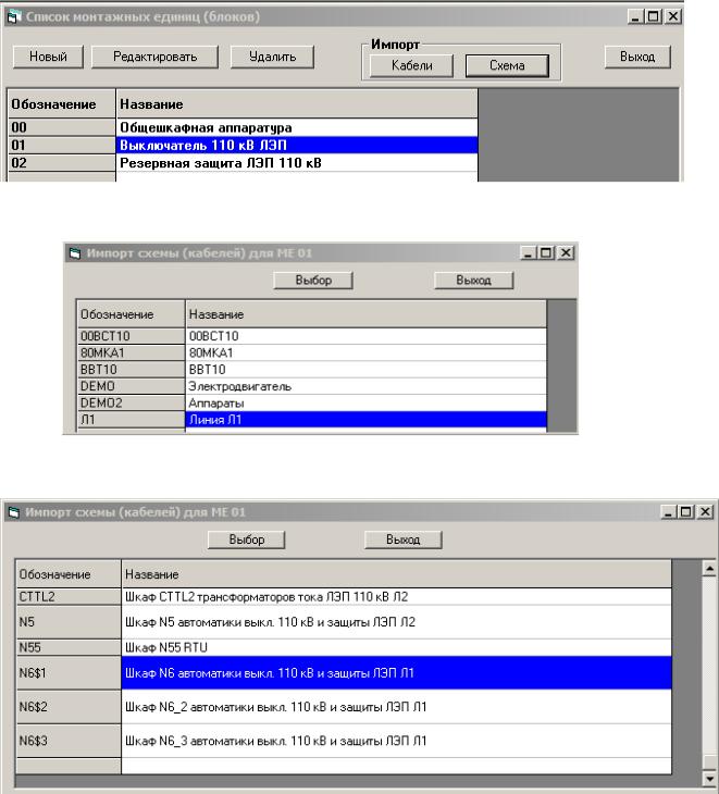 Для этого нужно войти в состав устройства и выбрать монтажную единицу, для которой осуществляется импорт схемы. Затем нажать кнопку «Схема».