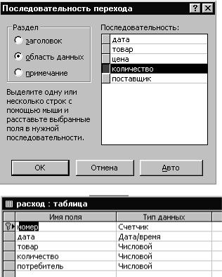 Аккуратно расположите поля в одной строке области данных, чтобы каждое поле располагалось под своей надписью. Корректировки могут нарушить последовательность перехода между полями в форме. В таком случае Вы можете установить правильную последовательность перехода, воспользовавшись пунктом меню «Вид Последовательность перехода» (рис. 59). Закроем «Конструктор».