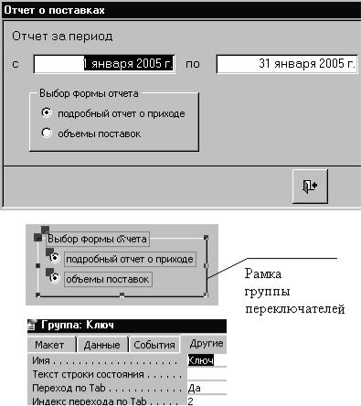 Рис. 88. Группа переключателей в форме «отчет_приход»