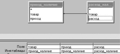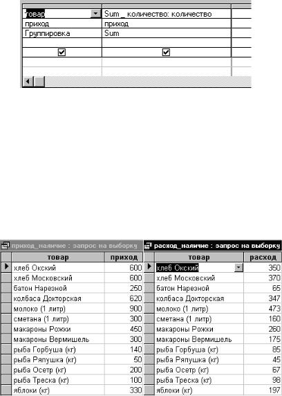 Рис. 109. Запросы «приход_наличие» и «расход_наличие»