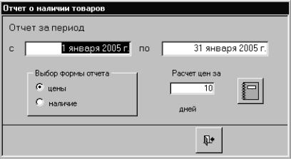 Рис. 107. Форма для вызова отчета о наличии товаров