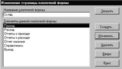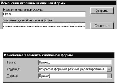 менить» и введем вместо предложенного системой новое имя страницы кнопочной формы – «Склад» (рис. 114) и приступим к созданию кнопок.