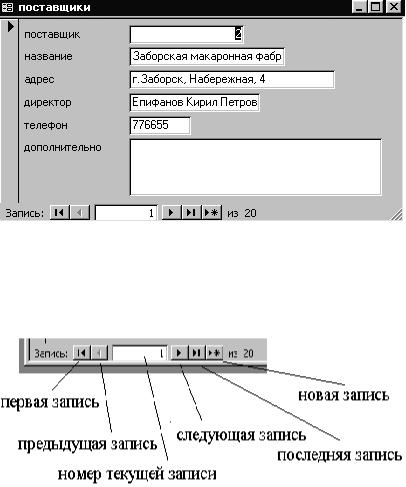 Пользуясь элементами управления этого поля, Вы можете перемещаться по записям, а также вводить новые записи. Закроем форму и на вопрос «Сохранить изменения?» ответим «Да». В диалоговом окне «Сохранение» зададим имя формы «поставщики_столбец». Теперь в разделе «Формы» окна базы данных появился первый объект.