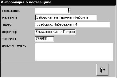 Свойству «Модальное окно» присвоим значение «Да», чтобы форма не перекрывалась другими окнами. Закроем окно свойств и покинем режим конструктора. Форма «поставщики_столбец» теперь будет иметь вид, представленный на рис. 36 (сравните с рис. 12). В этой форме Вы не можете перемещаться по записям, удалять или вводить новые записи!