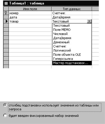 мировании столбца подстановки использовать значения либо из таблицы или запроса, либо ввести фиксированный набор значений.
