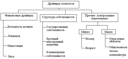 Таким образом, можно с долей уверенности сказать, что исследователи, чьи работы так или иначе затрагивают вопрос детерминанты стоимости, если и уделяли этому фактору внимание, то недостаточное, так как именно благодаря данному показателю становится очевидна дальнейшая судьба компании. И, как уже отмечалось ранее, рассматривать вопросы детерминанты стоимости можно через призму факторов, которые эту стоимость и составляют, т.е. через драйверы.