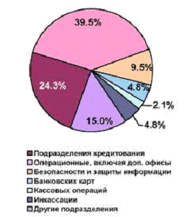 месте по количеству персонала стоят подразделения кредитования, где занято 24,3