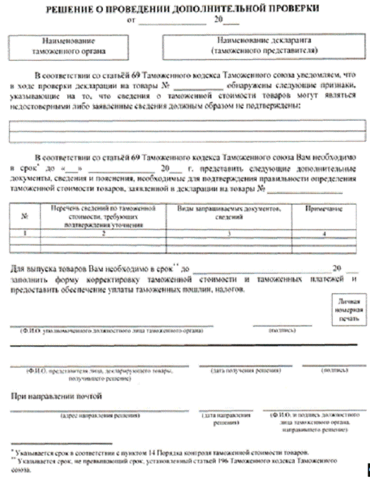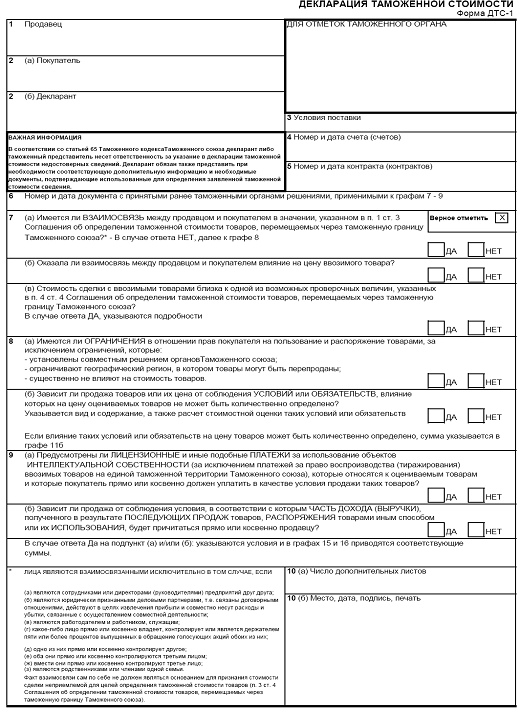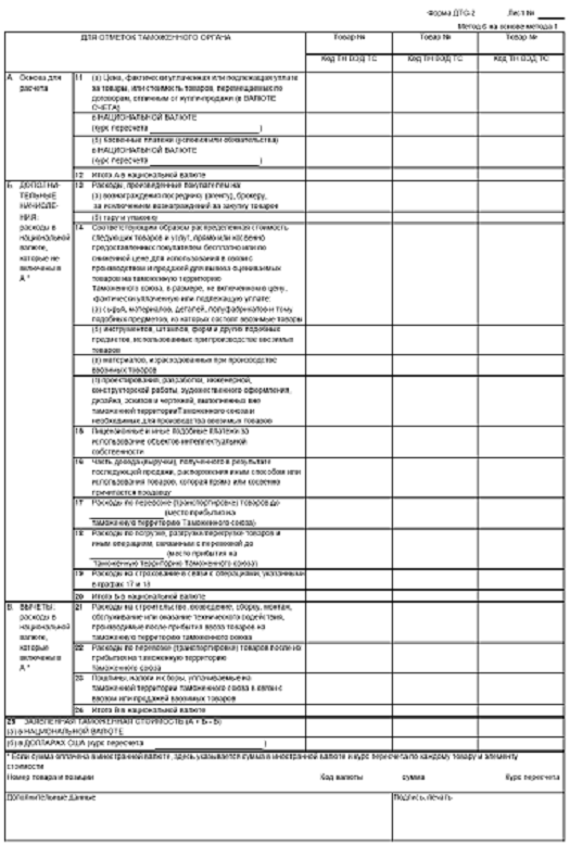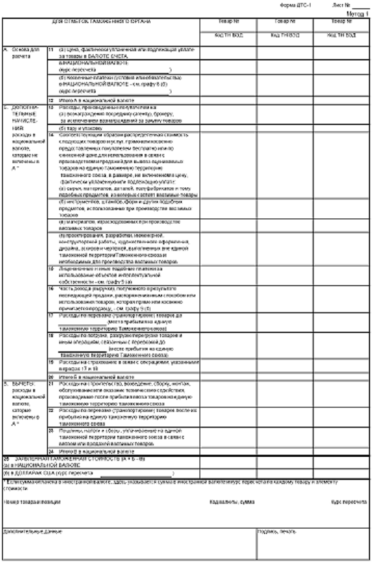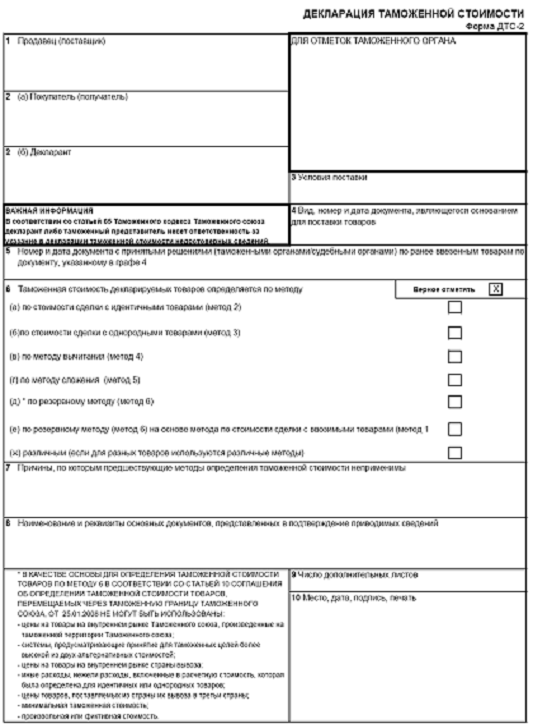 декларируемая стоимость заметно отличается от установленной ФТС (на территории