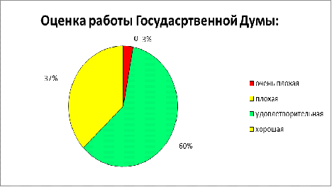 «удовлетворительную», 37% считают, что Государственная Дума работает «хорошо».