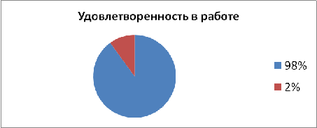 Большинство работников удовлетворены местом работы (находится вблизи дома); графиком (удобно забирать ребенка из детсада); условиями труда (комфортные, просторные кабинеты); доверительные и дружелюбные отношения с коллективом и начальником.