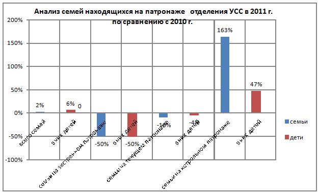 на патронаже отделения УСС в 2011г. по сравнению с 2010г.*