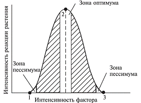 Рис. 2. Схема действия экологического фактора на растение: 1