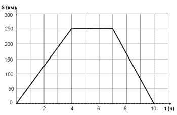 1) Расстояние между городами равно 250 км. 2) Автобус на обратном пути двигался с меньшей скоростью. 3) Стоянка автобуса между рейсами длилась 3 часа. 4) Автобус, двигаясь в прямом направлении, находился в пути 4 часа. |