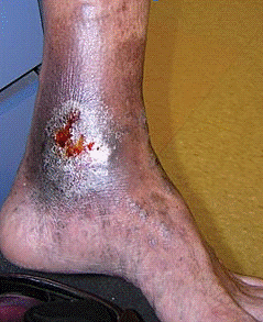 частый случай язв стопы, обычно развивается на фоне сахарного диабета.