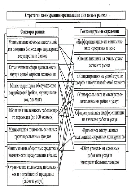 Успешная стратегия развития детского сада должна учитывать, как все эти ожидания могут совпадать, пересекаться и конфликтовать (такое тоже бывает). Поэтому типичной стратегией конкуренции в данном случае является фокусирование на небольшом сегменте рынка и оборона с целью защиты своей рыночной позиции от других конкурентов Стратегия организаций на «пятых ролях» с долей менее 1% рынка. Рис. 12