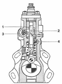 - плунжер насоса; 2 - контрольная втулка; 3 - управляющий шток регулирующей втулки; 4 - регулирующая рейка.