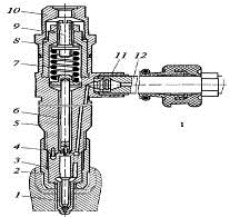 гайку 10 и топливоприемный штуцер 12 с сетчатым фильтром 11. Распылитель и игла