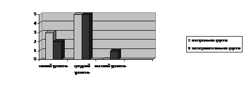 Выводы. По данной методике в экспериментальной группе 2 ребенка показали низкий уровень развития продуктивности и устойчивости внимания, 5 детей средний и 1 ребенок высокий уровень, а в контрольной группе у 5 детей средний уровень развития продуктивности и устойчивости внимания, у 3 детей низкий.