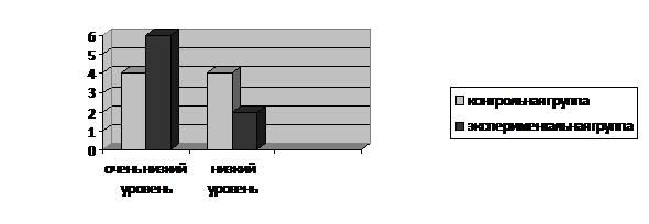 Выводы. По данной методике в экспериментальной группе 6 детей показали очень низкий уровень развития переключения и распределения внимания и 2 ребенка низкий уровень, а в контрольной группе 4 ребенка показали очень низкий уровень развития переключения и распределения внимания, 4 - низкий.