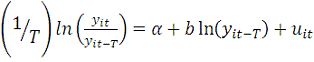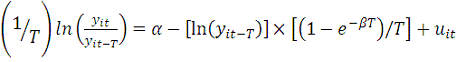 Уравнение (1) представляет собой модель безусловной β-конвергенции. При добавлении в нее дополнительных объясняющих переменных, которые могут оказывать влияние на темп роста исследуемого показателя, уравнение регрессии становится условной моделью β-конвергенции.