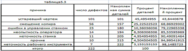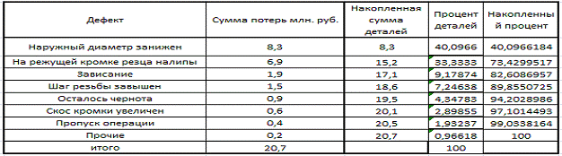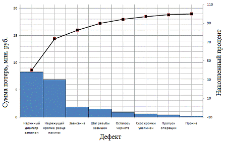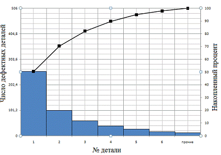 Рисунок 6 - Диаграмма Парето по дефектам детали