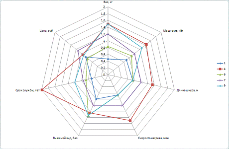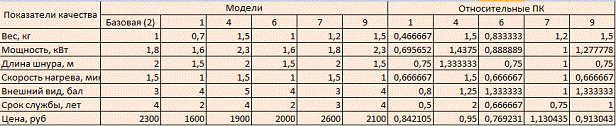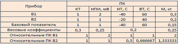 Необходимо вычислить значения комплексного показателя качества приборов на