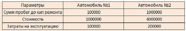 автомобиль. На выбор предлагаются автомобиль №1 и №2, которые имеют одинаковые