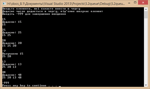 чергу, від’ємні елементи - вилучають перший елемент із черги. Динаміку вмісту