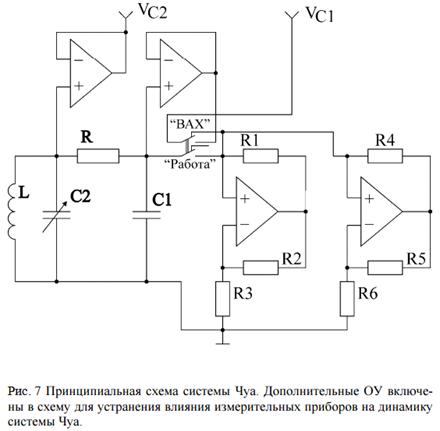 На Рис. 7 изображена реализация цепи Чуа на ОУ.