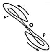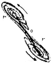 в системе существуют два устойчивых положения равновесия P+, P- и одно