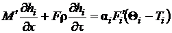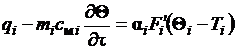 где F - площадь проходного сечения канала; mi - масса материала стенки; cмi - теплоемкость материала; αi - локальный коэффициент теплоотдачи (предполагается, что он подчиняется тем же закономерностям, что и в статике).
