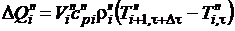 потока, заключенного между сечениями i+1 и i, уравнение теплового баланса можно