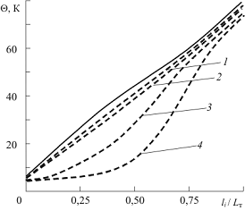 Рис. 3. Изменение температуры стенки канала в теплообменном аппарате: