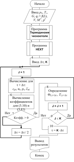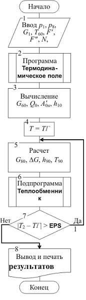 теплообменного аппарата. Структура алгоритма в основном совпадает со структурой