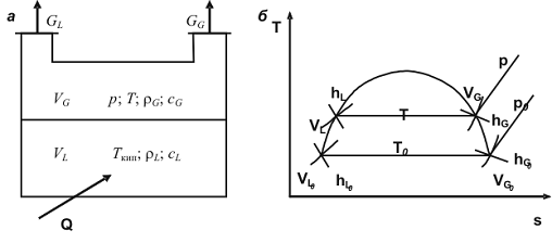 рассматриваемом случае значения теплоемкости cG и cL вычисляем для насыщенных