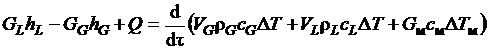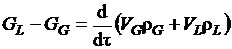 показывает, что разница между притоком жидкого криопродукта GL и стоком пара GG соответствует изменению расхода вещества в паровом VG и жидкостном VL объемах.