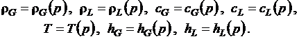 теплоемкость сG и сL являются функциями давления p, поэтому уравнения состояния