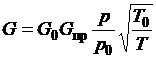 где G0 - расходный коэффициент нагнетателя; p, T - давление и температура на входе в нагнетатель; p0, T0 - давление и температура на выходе из нагнетателя.