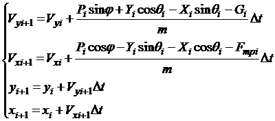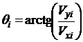- угол между горизонтом и вектором скорости V на i-м шаге решения,