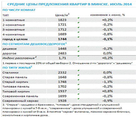 Обзор рынка жилой недвижимости Минска за июль 2014 года.