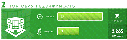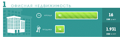 Если сравнить приведенные данные с предыдущим периодом, то средняя стоимость аренды офисных помещений снизилась на 2 евро (с 18 до 16), а 1 метр для продажи стал дешевле на 317 долларов.