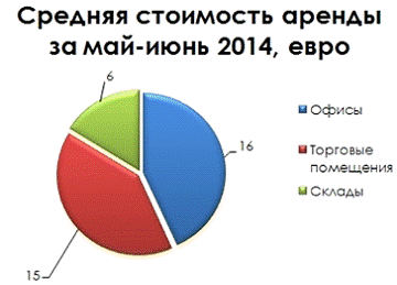На рисунке 1.10 указана диаграмма средней стоимости аренды коммерческой недвижимости за май-июнь месяц 2014 года [13].