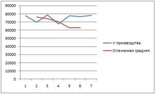 Определение линии тренда методов скалярных средних- ряд выровненный методами скалярных средних