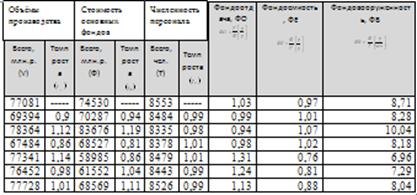 Таблица 1.4 - Анализ динамики основных показателей развития и использования потенциала