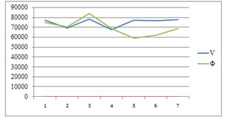 Рисунок 1.5 - Зависимость объема производства и стоимости основных фондов