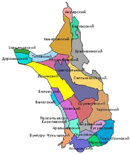 Беловском, Прокопьевско-Киселевском, Бунгуро-Чумышском, Ерунаковском,