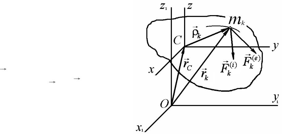 Сxyz – поступательно движущаяся система координат с началом в центре масс
