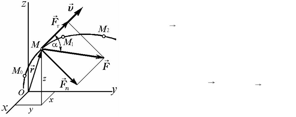 4. Работа переменной силы в случае криволинейной траектории движения точки: